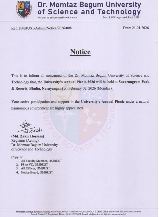 Notice regarding University’s Annual Picnic-2026 on February 02, 2026