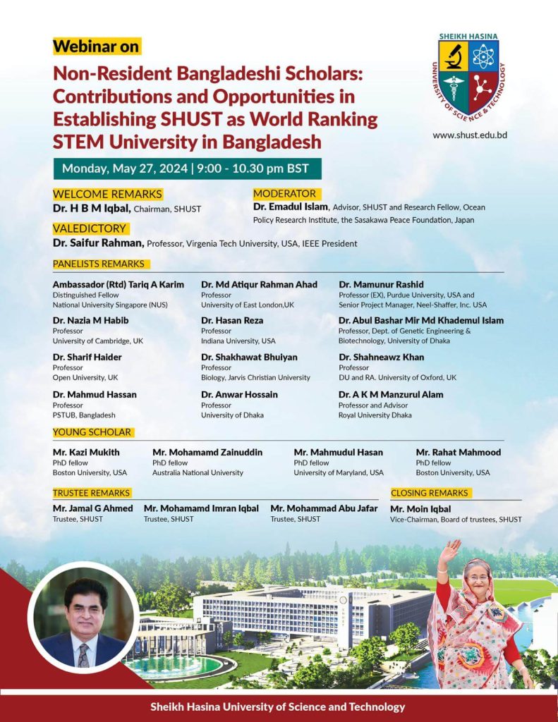 Webinar on Non-resident Bangladeshi Scholars: Contribution and oppurtunities in establishing SHUST as World Ranking STEM University in Bangladesh